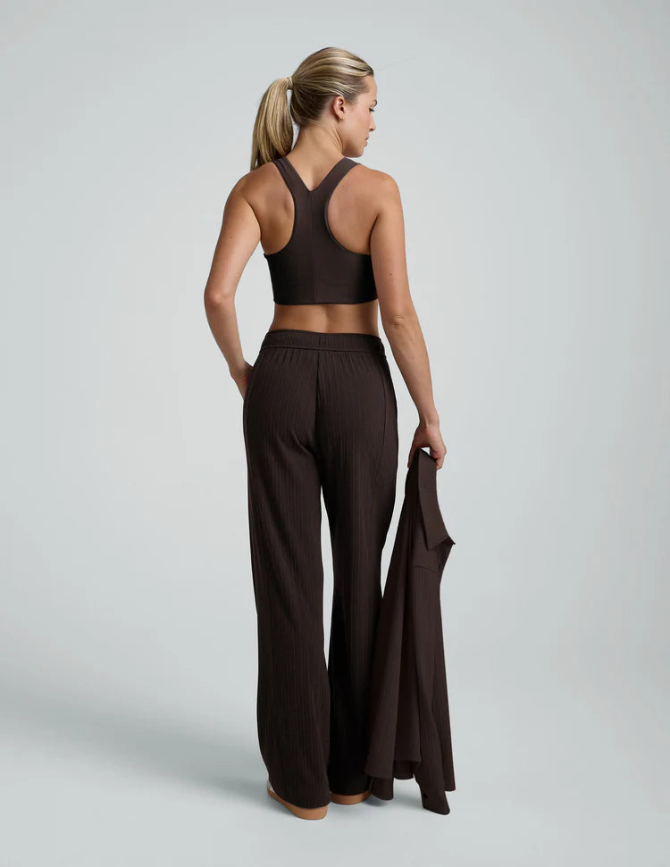 Inhale, exhale , drop your shoulders, unclench your jaw. Similarly, the Breathe Easy Ribbed Wide Leg Pant is made for adding a little relaxation to your day. The pants are equipped with an elastic waistband with an adjustable drawcord for your best fit.