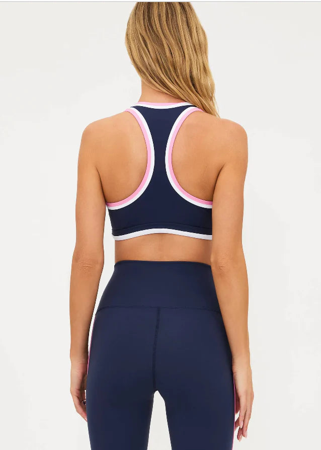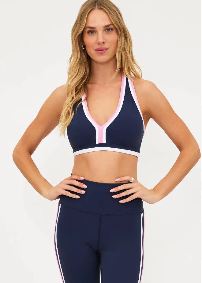 Elevate your studio-to-street look with the Beach Riot Ida Top, a sleek sports bra designed for both support and style. Featuring a deep V-neckline framed with contrast pink and white trim, this medium-support top combines bold colorblocking with a flattering silhouette. Crafted in a smooth, stretchy performance fabric, it offers a secure fit that keeps you comfortable through everything from yoga to weight training. Pair it with matching leggings for a head-turning set.