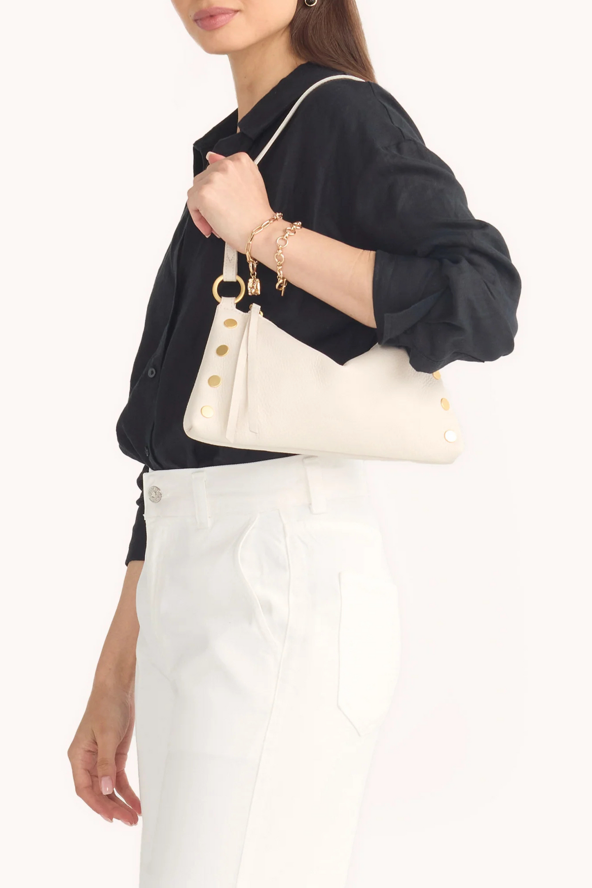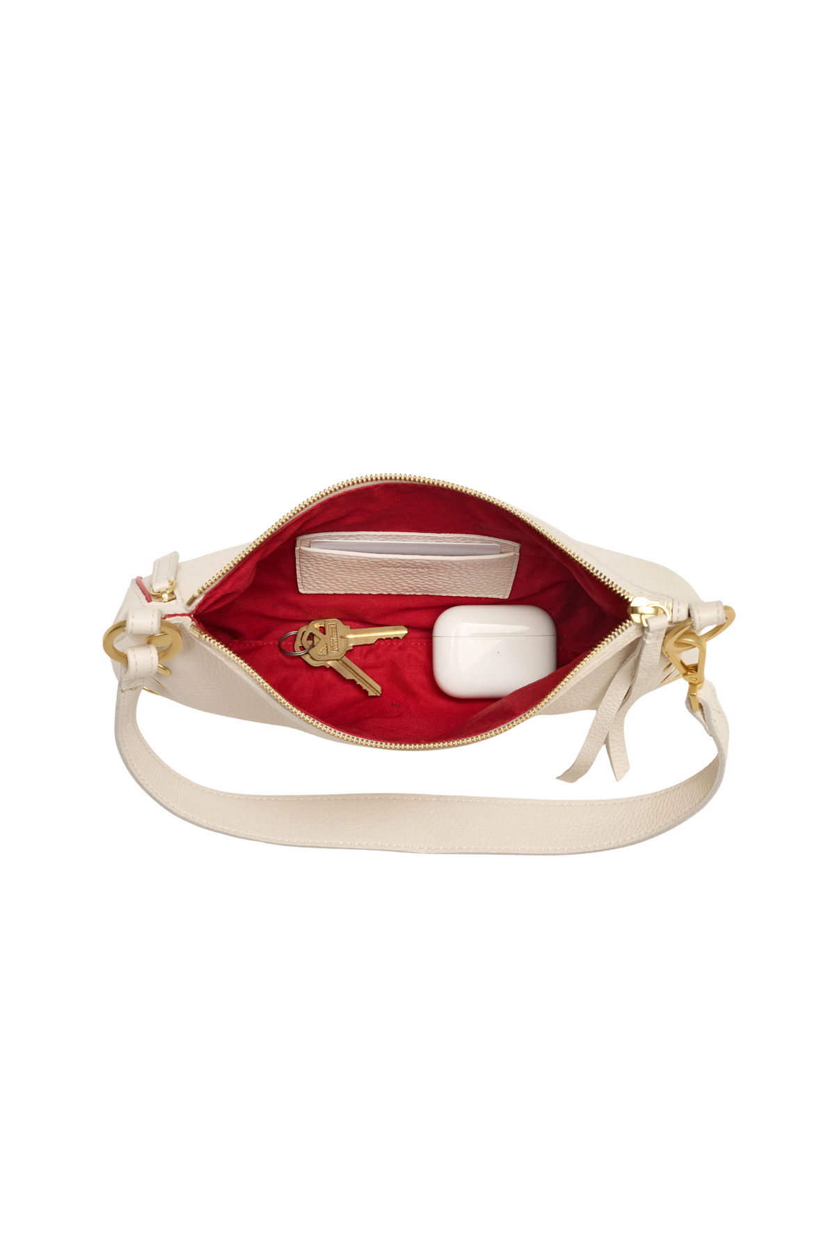 This fresh, of-the-moment bag is a must-have companion for nights on the town. Featuring a slouchy but current shape, crafted with our classic black pebbled leather, this versatile little number transitions from a wristlet to a shoulder bag in seconds flat. The Kyle also includes a removable and adjustable crossbody strap, so it's easy to go hands-free. Wear Kyle three ways, including as a crossbody bag, shoulder bag or wristlet.