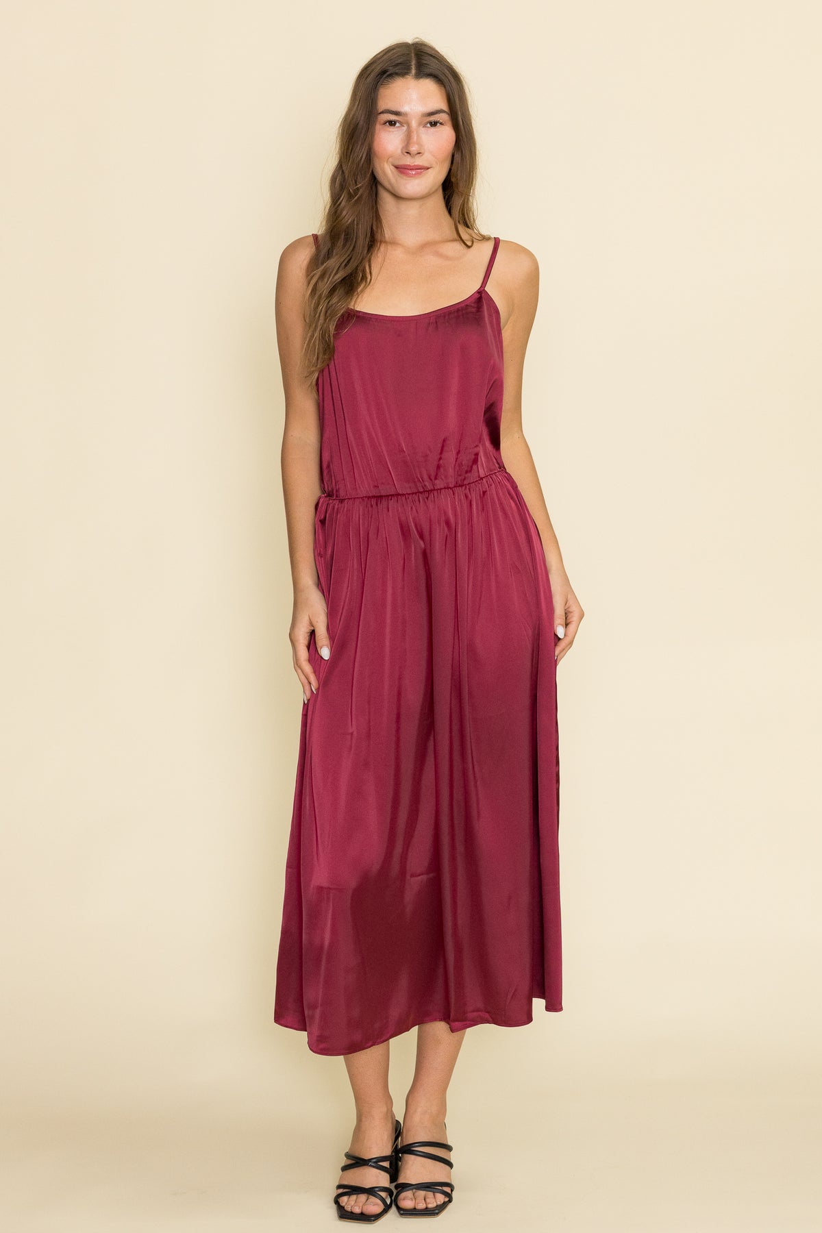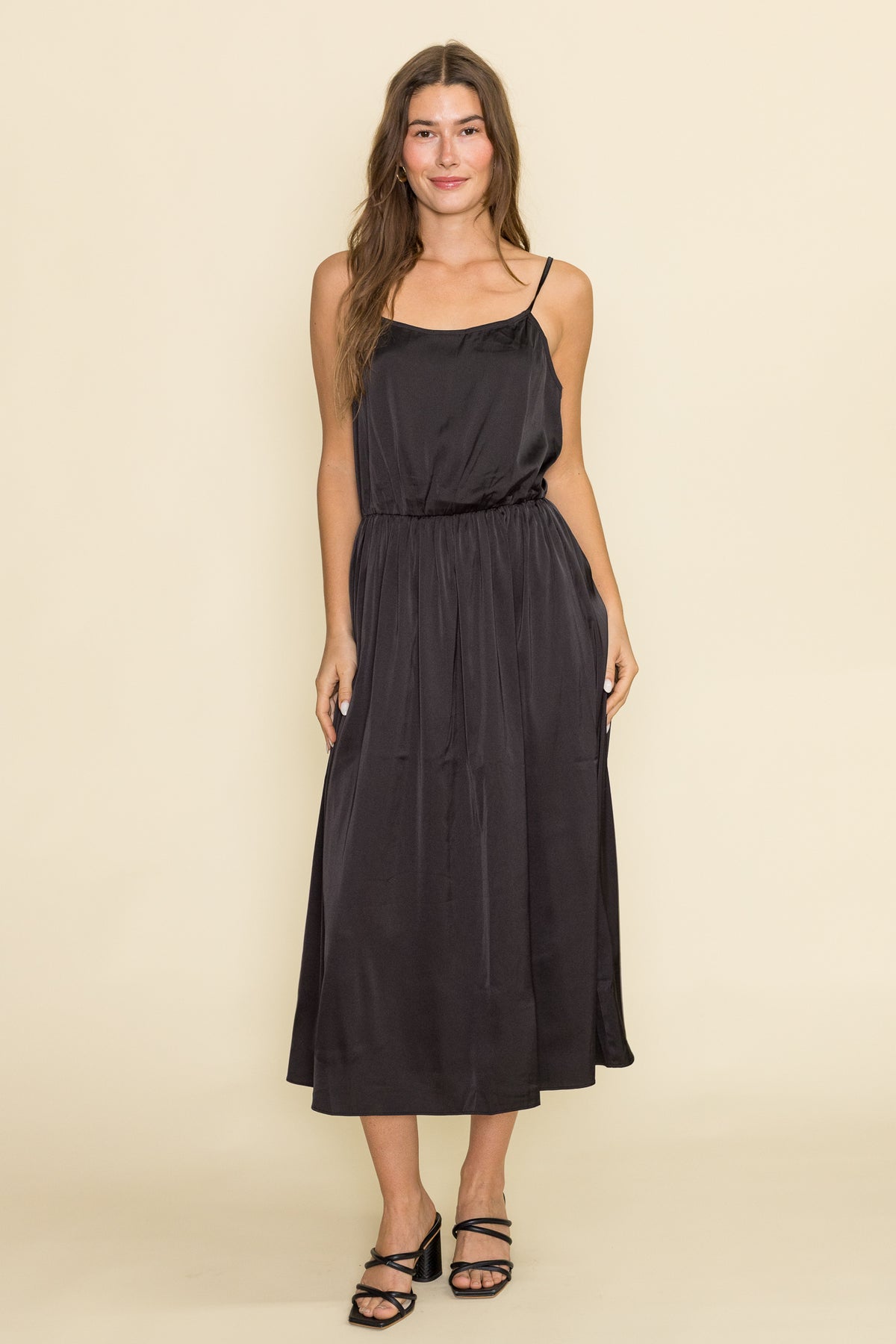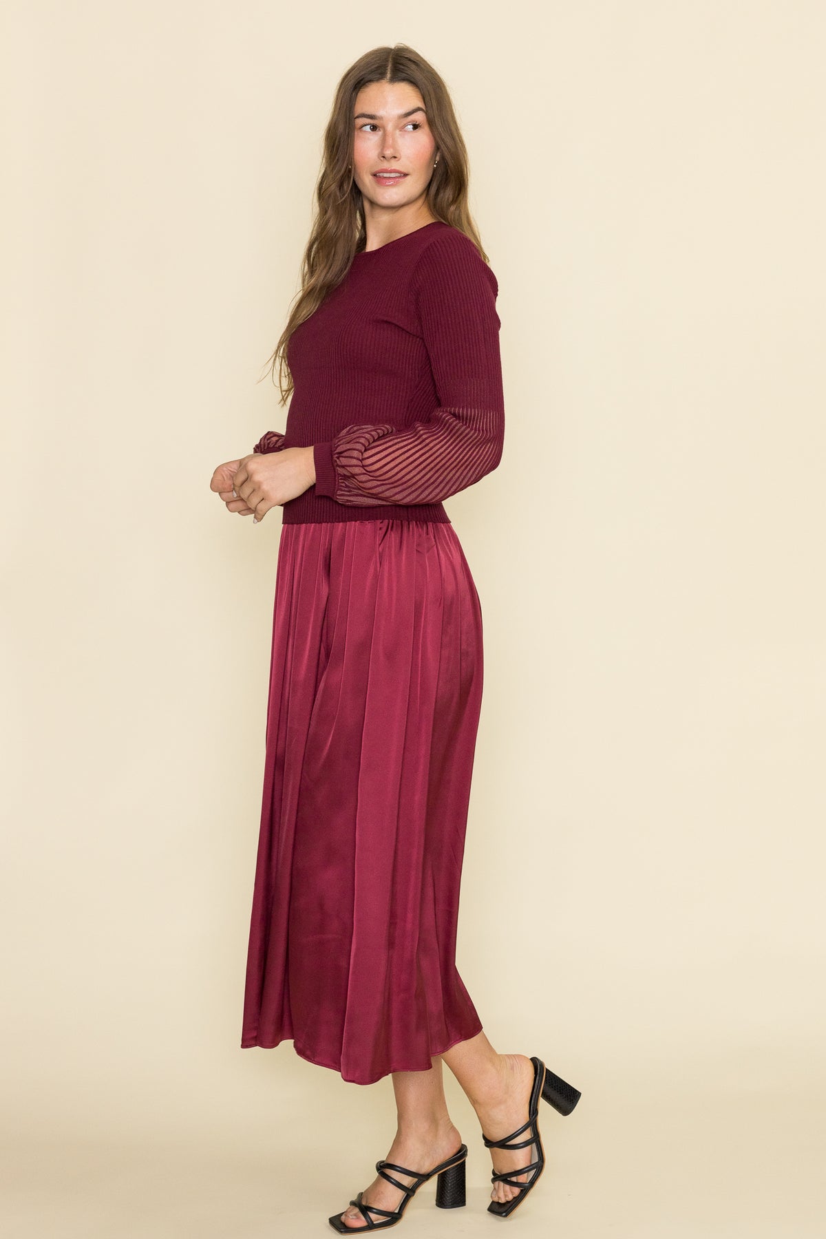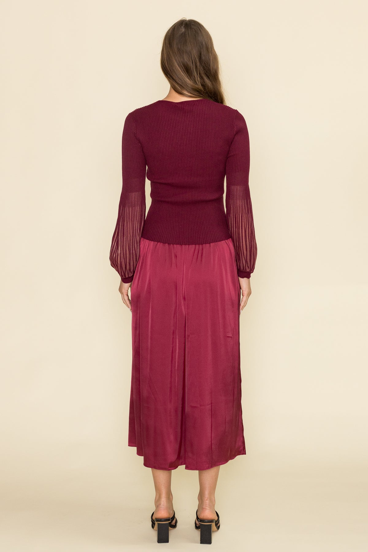 A play of volume and texture in a two-piece set. The pairing features a strappy midi dress and a fitted rib-knit sweater with long sleeves and voluminous sheer piecing. Wear them together or style them separately with items in your existing wardrobe.