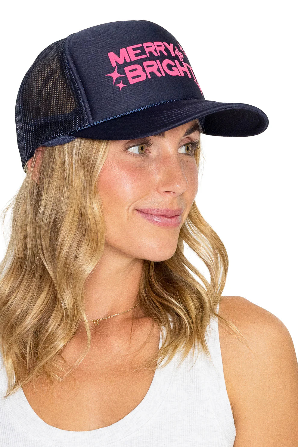 A hat to look and feel good in a comfortable foam front, mesh back, high crown trucker hat featuring an adjustable snap back.