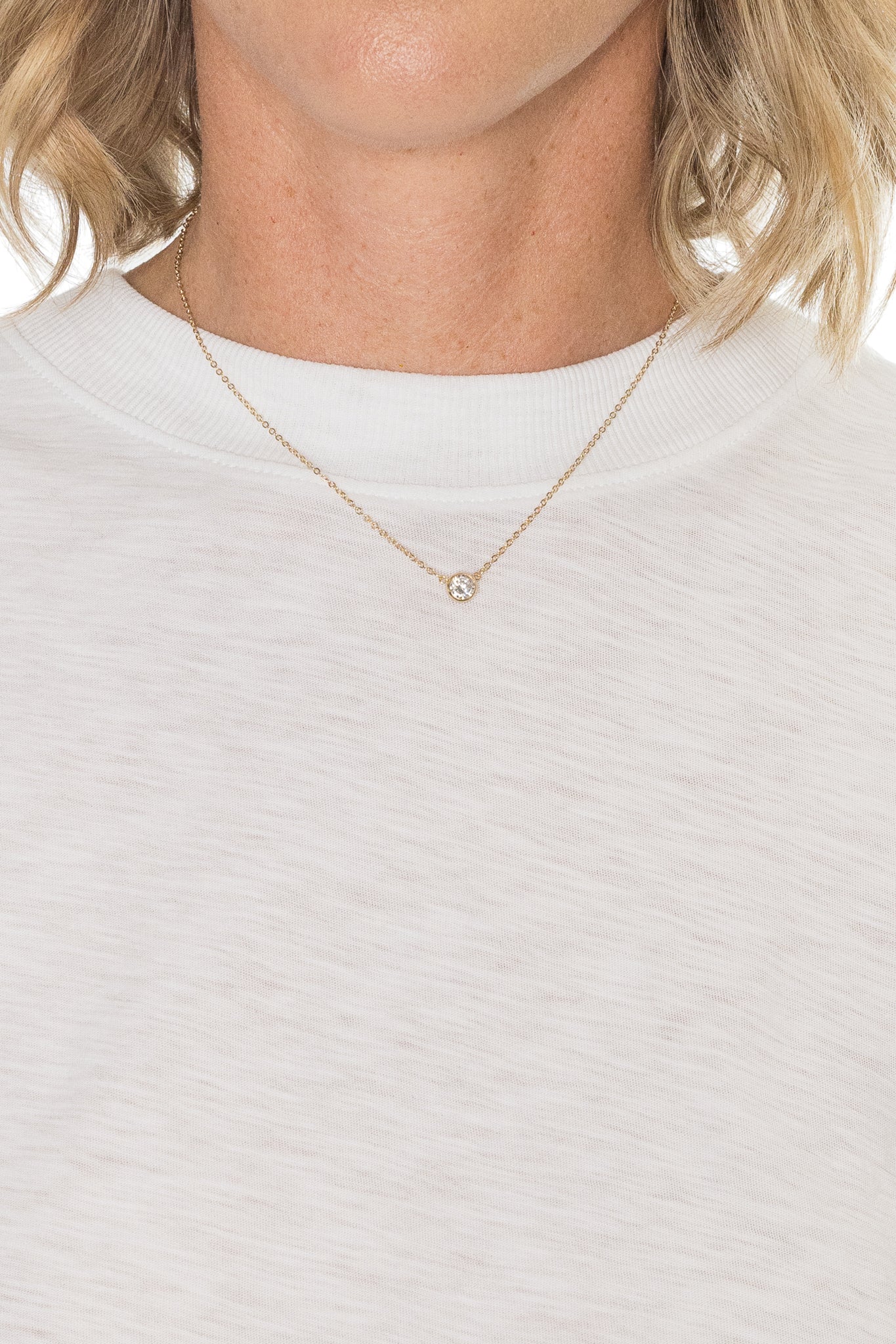 A bezel-set cubic zirconia lends refined elegance to this delicate Miranda Frye necklace. This best seller is the perfect addition to your layer!