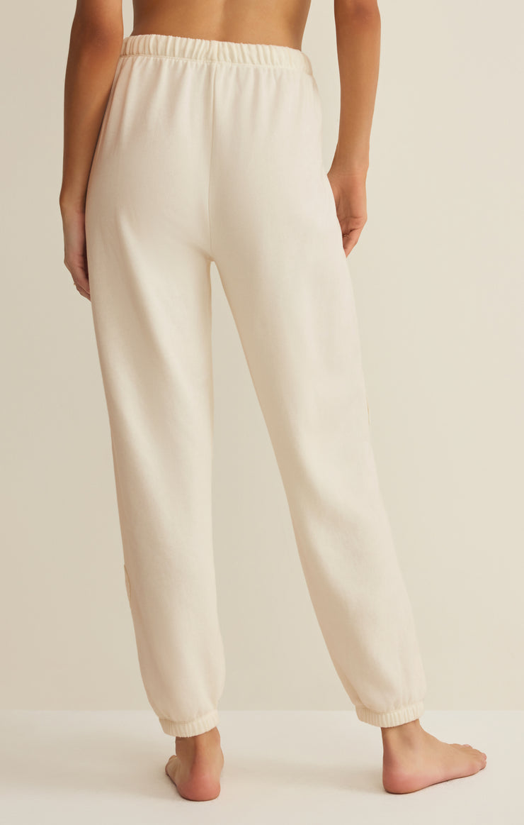 This soft fleece jogger is designed with tonal heart appliqués and a relaxed, tapered fit that’s flattering and comfy. The drawstring waistband and plush interior make it your go-to for lounging and staying in all day.