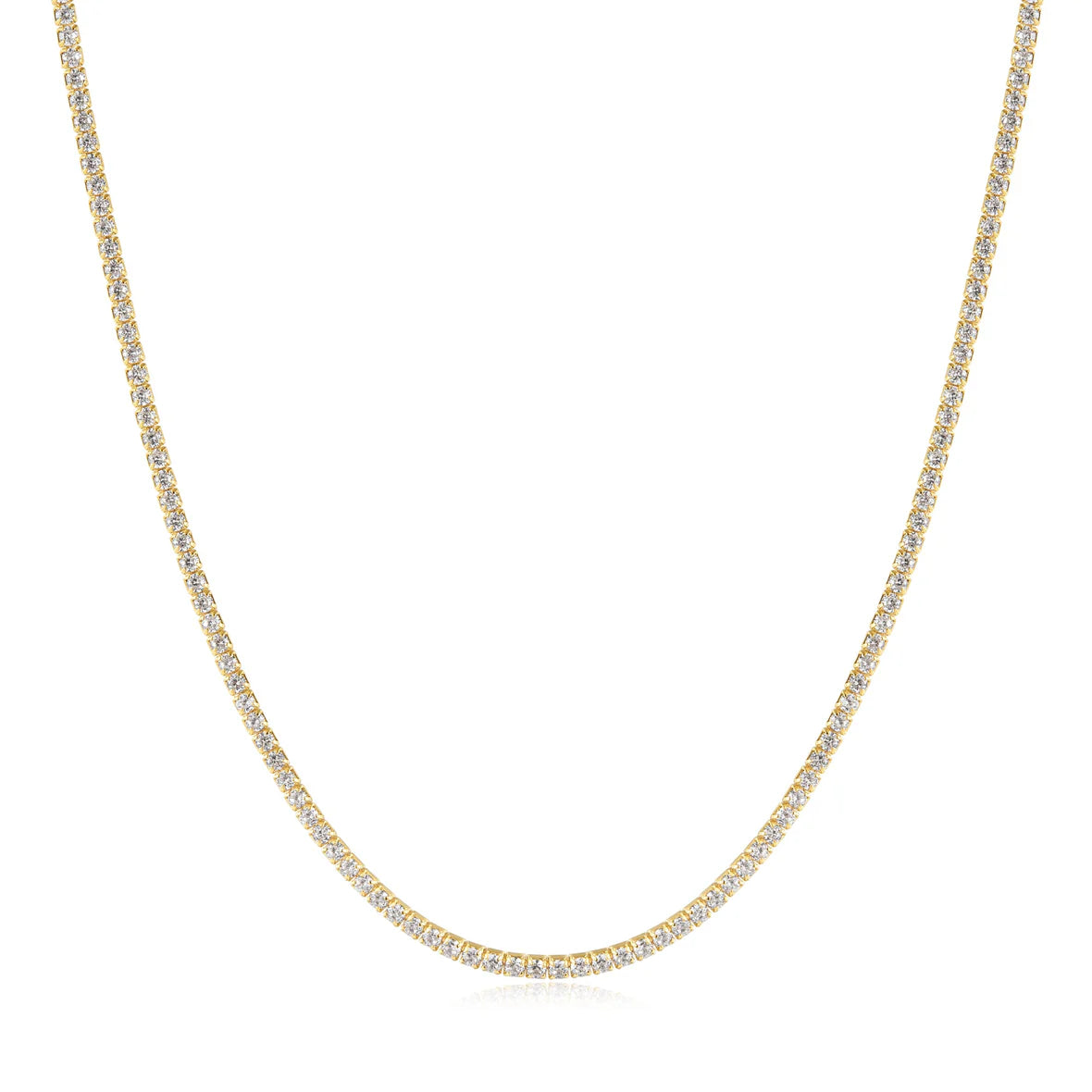 Decorated with a continuous line of cubic zirconia, this tennis necklace in 14kt gold-plated sterling silver can be your sparkling must-have. Statement enough to be worn alone or stack it with other chains for a luxe, modern look.