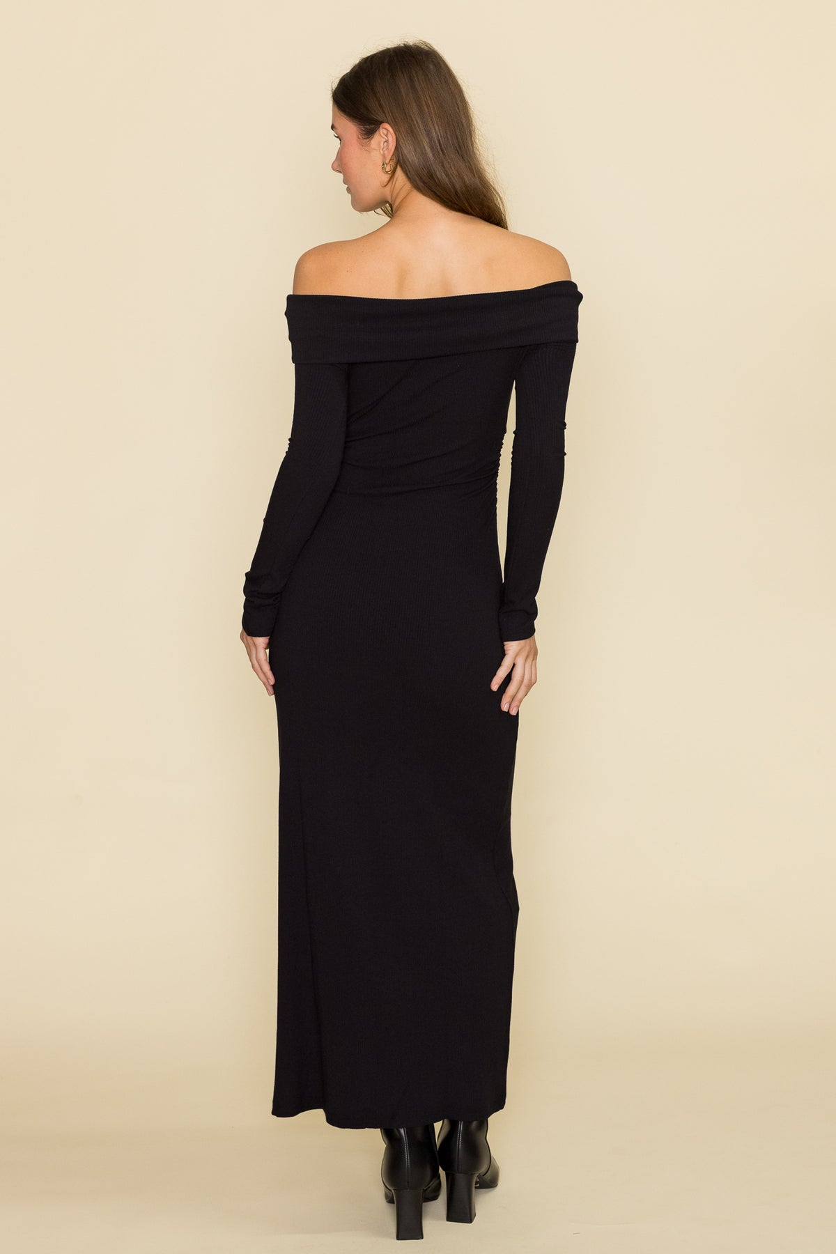 Designed with an off-the-shoulder neckline and long, slim sleeves, the Carrie is our ankle-length maxi dress that exudes understated glamour with a modern edge. The column fit skirt creates a sleek silhouette, while our signature rib fabric hugs in all the right places for a comfortable, sculpted feel. Elegant yet easy, this effortless pick transitions seamlessly from date night to special occasion — a forever piece you'll reach for again and again.