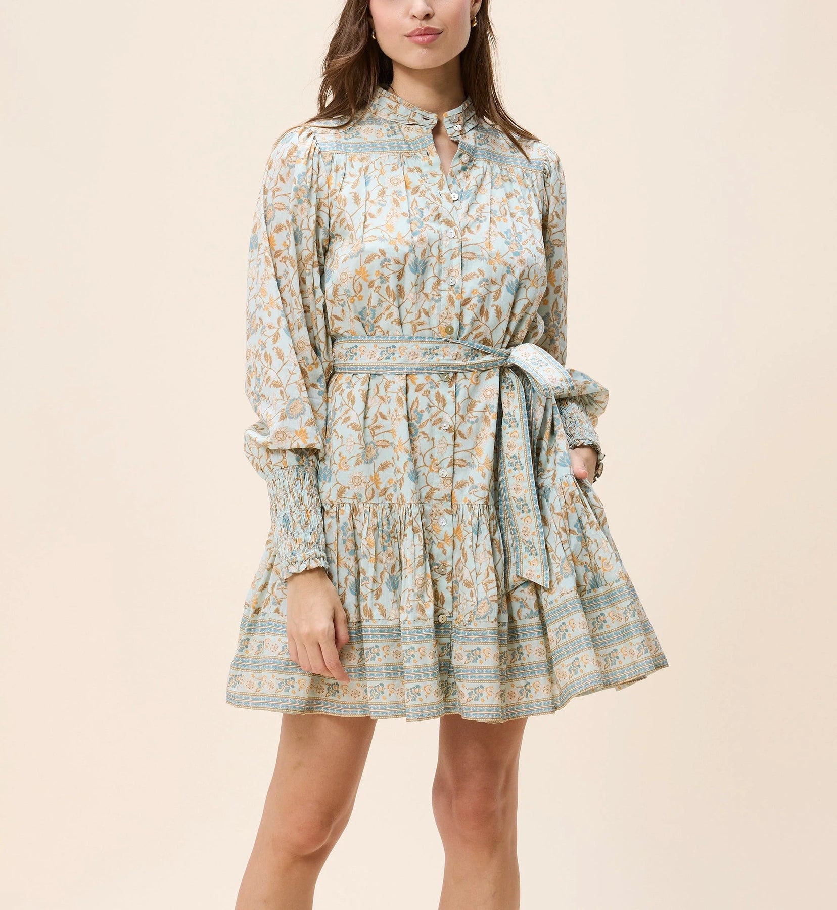 The Karli Mini Dress is a romantic, flirty silhouette crafted from 100% GOTS-certified organic cotton and ethically handmade in India. Designed with a beautifully structured bodice featuring smocking at the back for ease and comfort, this dress pairs soft volume with thoughtful detailing. Long sleeves with elasticated openings add a touch of playful movement, while the intricately placed print creates an artful, feminine finish. Effortless yet statement-making, the Karli Mini Dress transitions seamlessly from day outings to warm, breezy evenings.