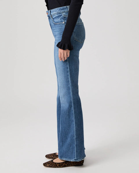 The Marlow Skimmer is designed to graze the top of the foot with a flare and can be easily paired back to flats or sandals. Cut from our TRANSCEND VINTAGE denim in softly aged light/medium wash with a copper button and silver rivets, this pair combines the signature comfort of Transcend with rich denim character for a lived-in look.