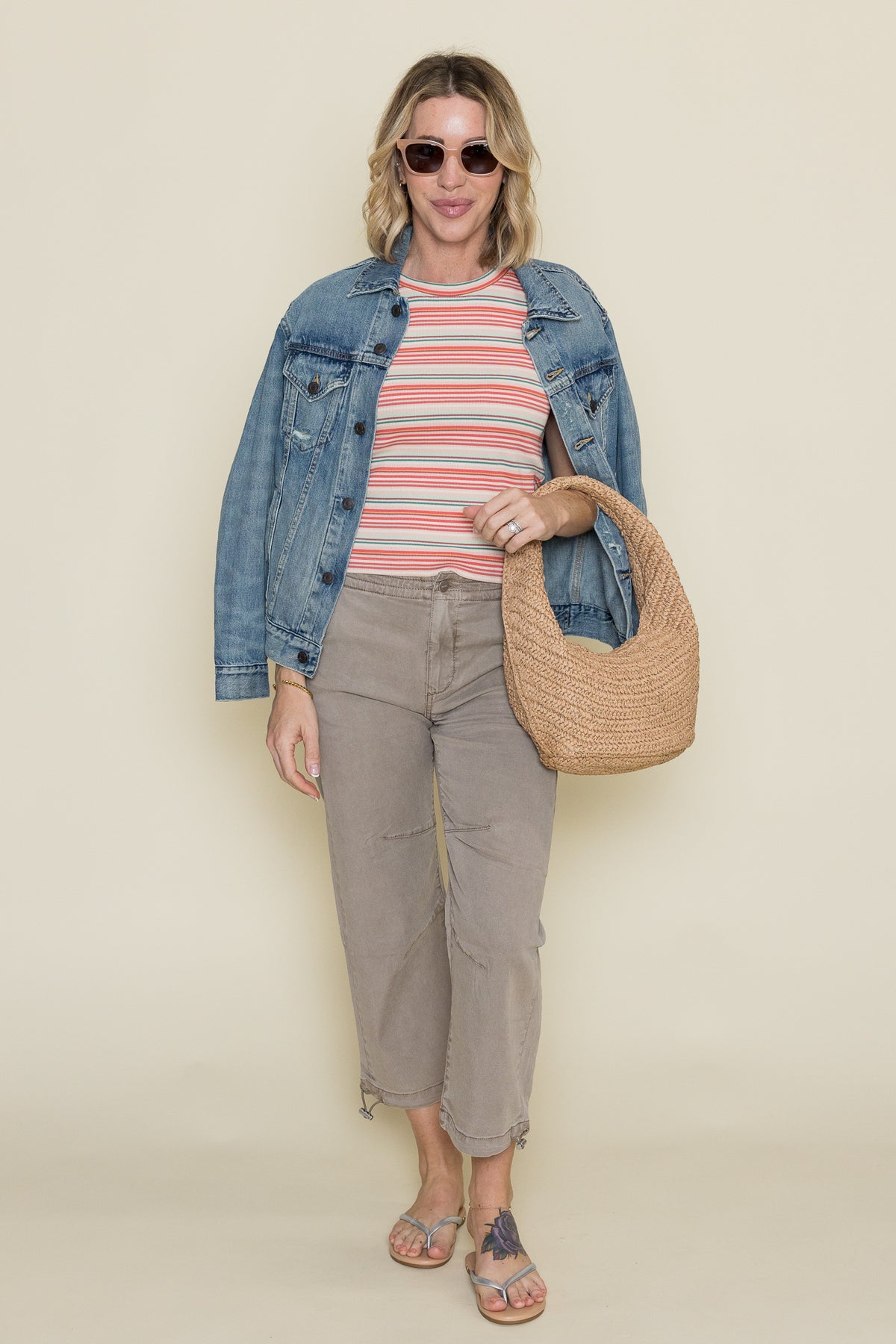 Take a break from your everyday denim with the new Reid Jogger in a vintage-inspired forest green hue. Reid is designed with tactical styling details such as elasticated cinching at the ankle, back flap pockets, and knee darts. This effortlessly cool high-rise pant is made from a super soft fabric with the perfect amount of stretch for the most comfortable fit.