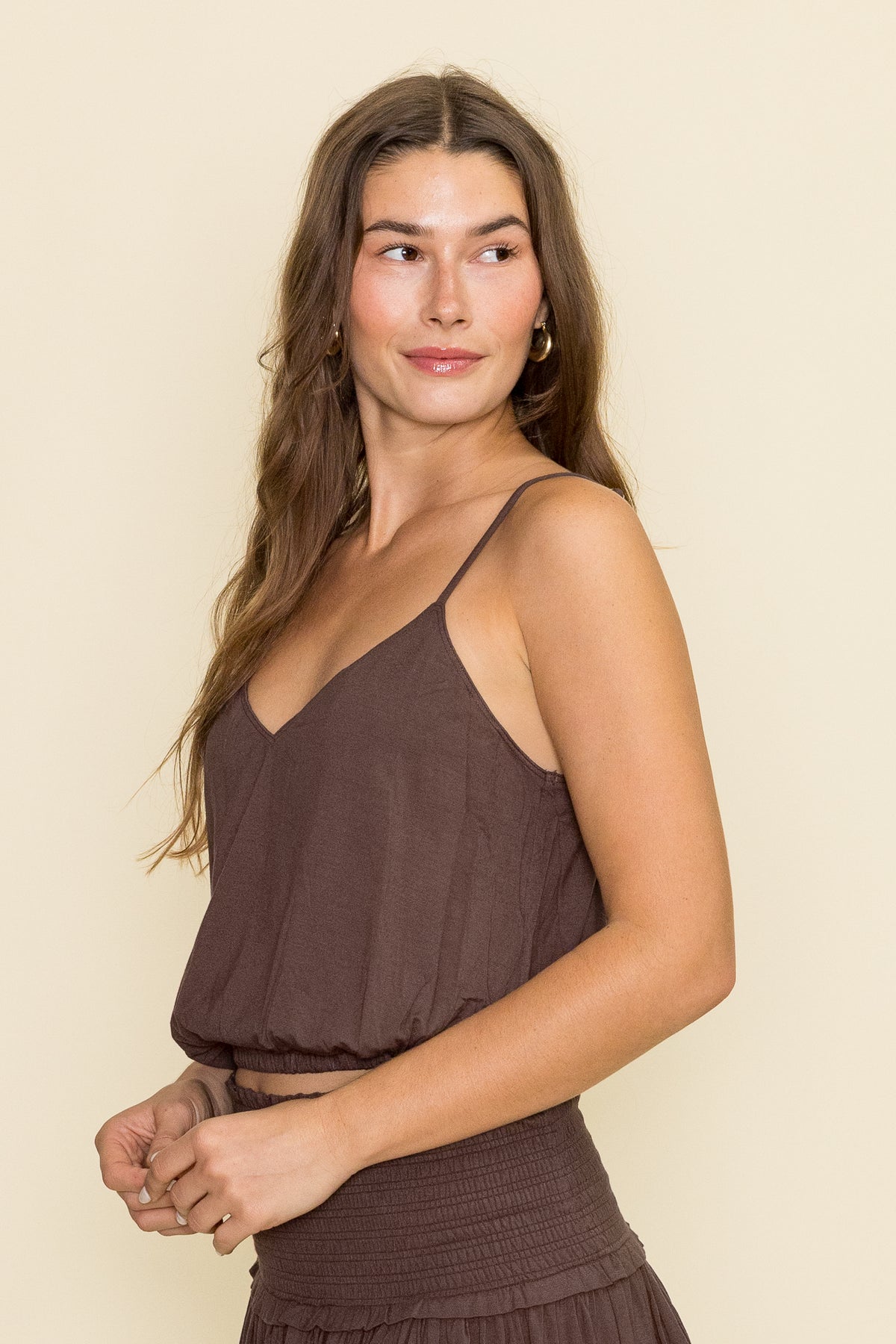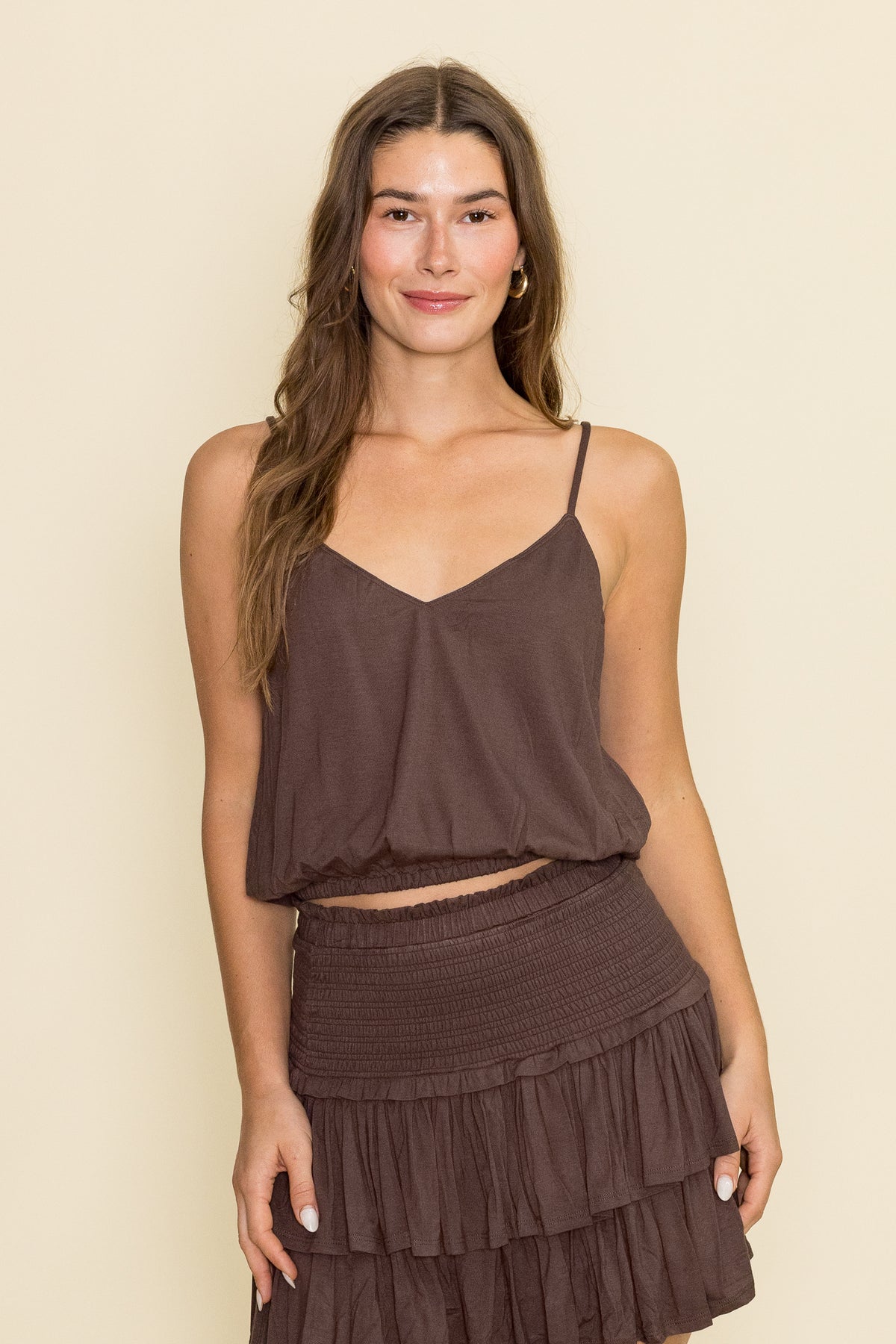 Introducing the Maya Knit Tank - the perfect addition to your wardrobe. Maya is a v-neck, cropped bubble cami with adjustable straps for a customizable fit.