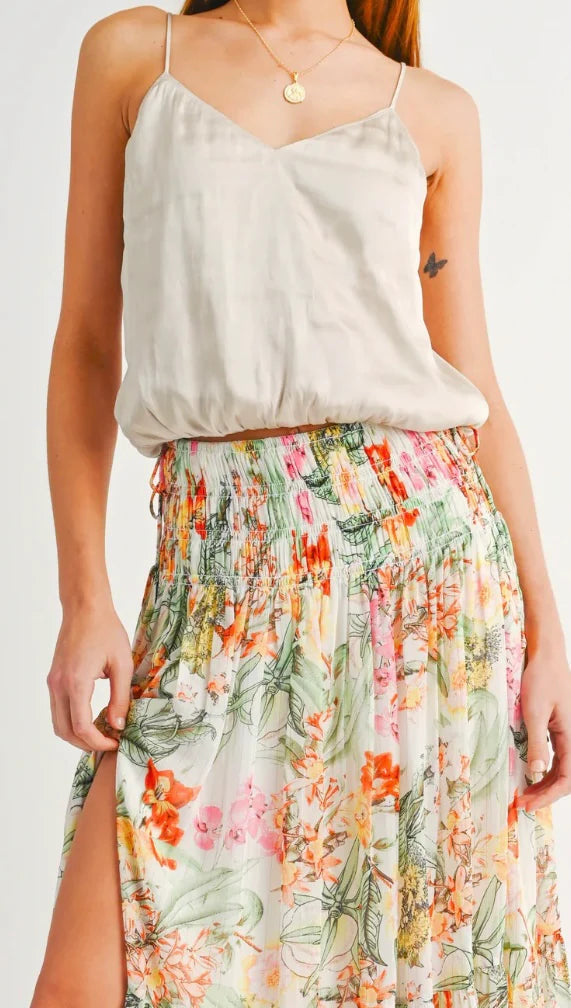 Introducing the Amore Tank - the must-have tank top for any fashion-forward individual. With its V-neck design and adjustable straps, this bubble tank top offers a versatile and comfortable fit, while the extended length provides coverage and a sleek silhouette. Made with soft, satin material and offering a variety of colors, this tank is perfect for any occasion and a must-have in your closet.