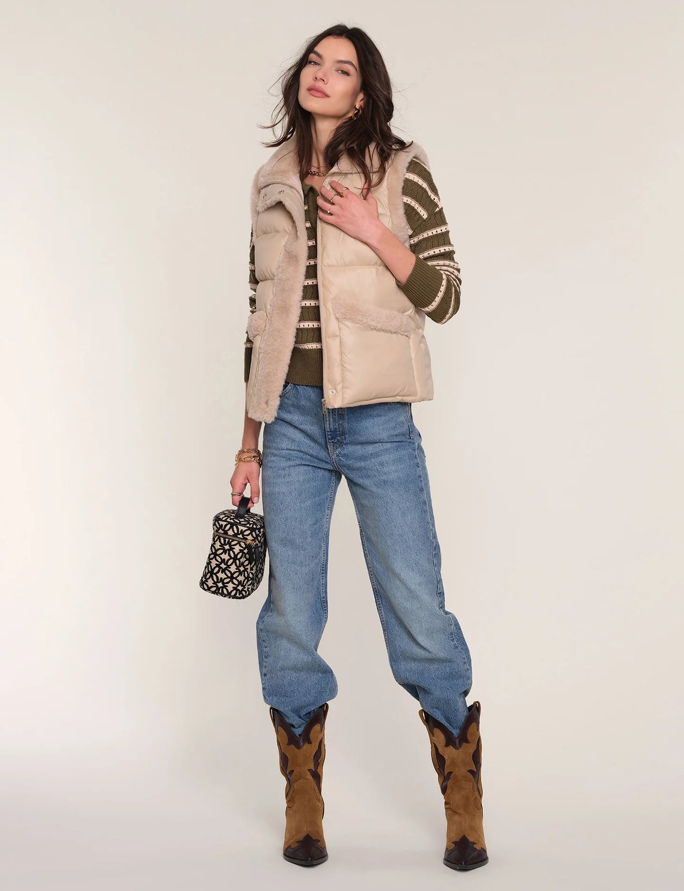 The Serra Vest is a super cozy puffer vest with contrast faux fur edges. We love it thrown over a chunky sweater and jeans for looking chic, on the go.