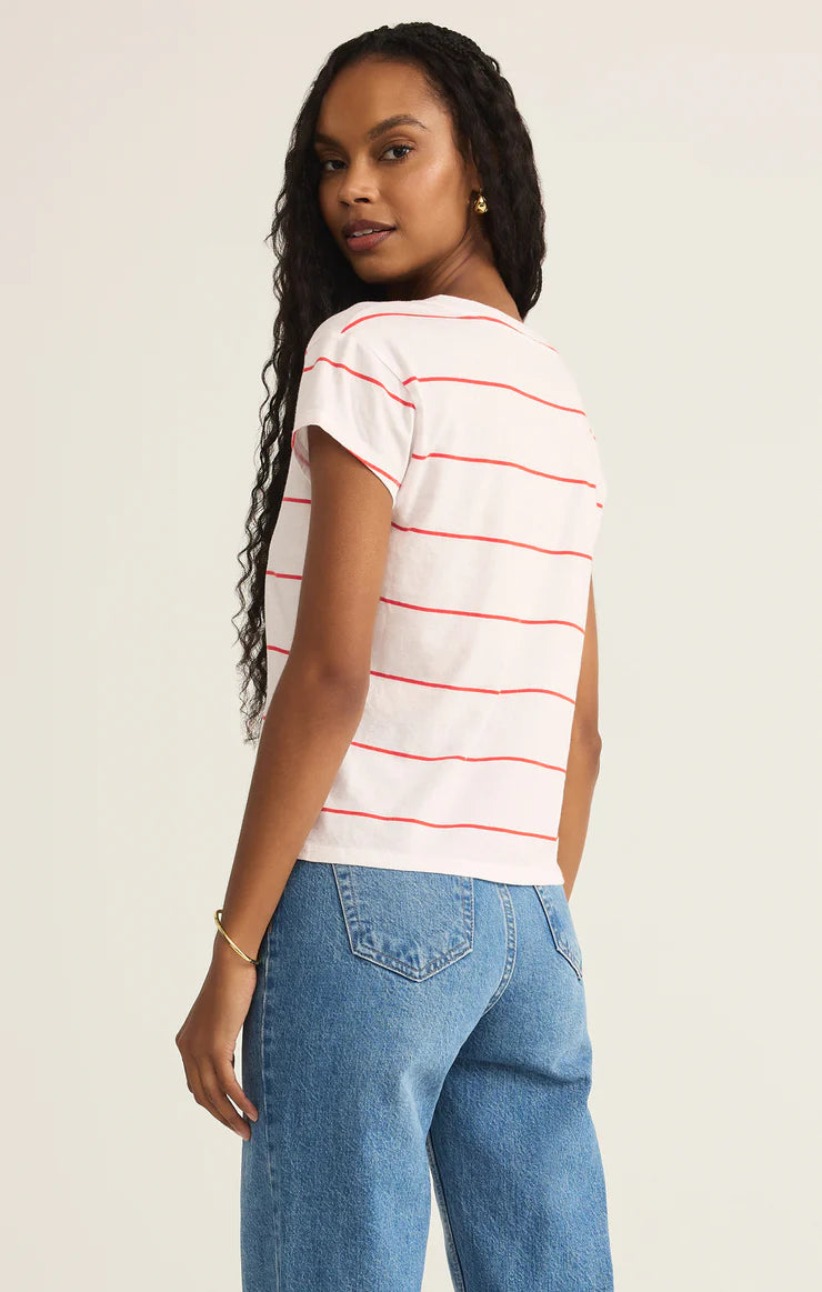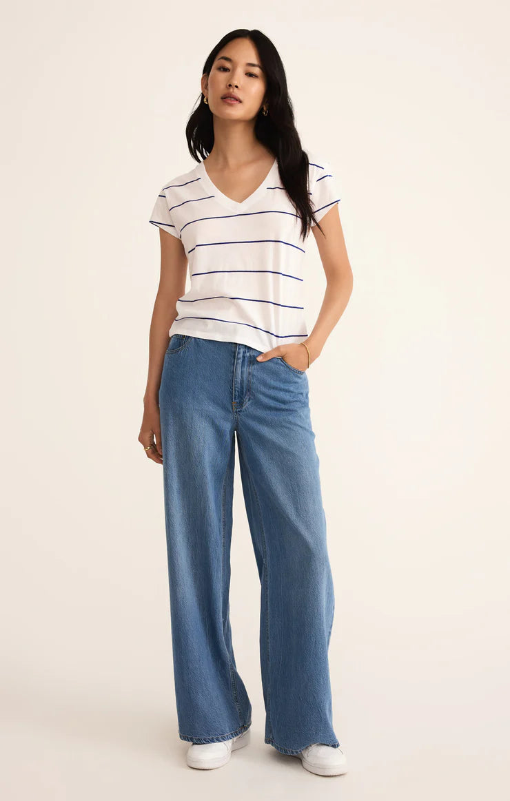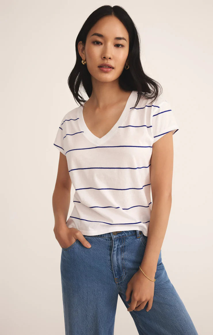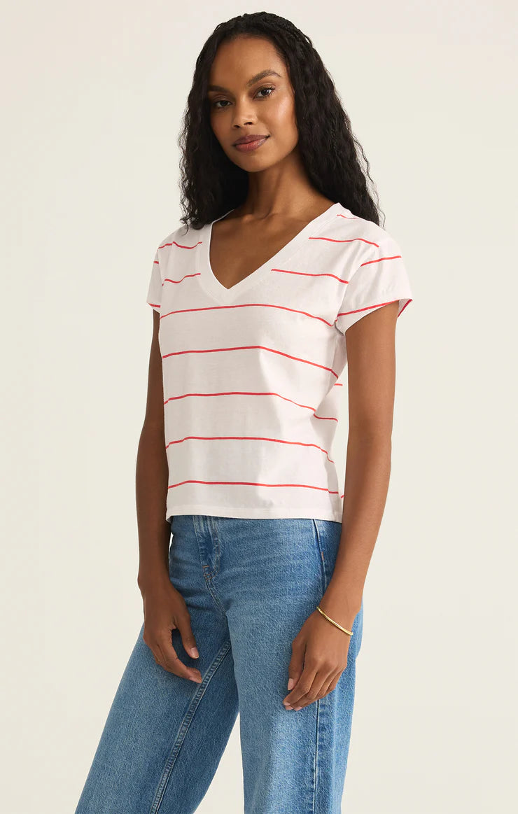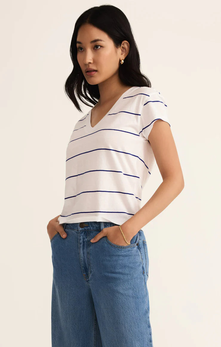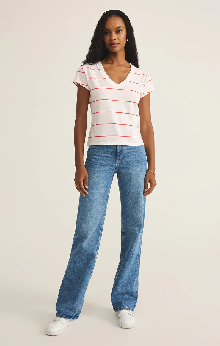 Striped, soft, and effortlessly cool, this relaxed v-neck tee is made for everyday wear. Crafted from breathable cotton jersey, it’s an easy pick for any season.