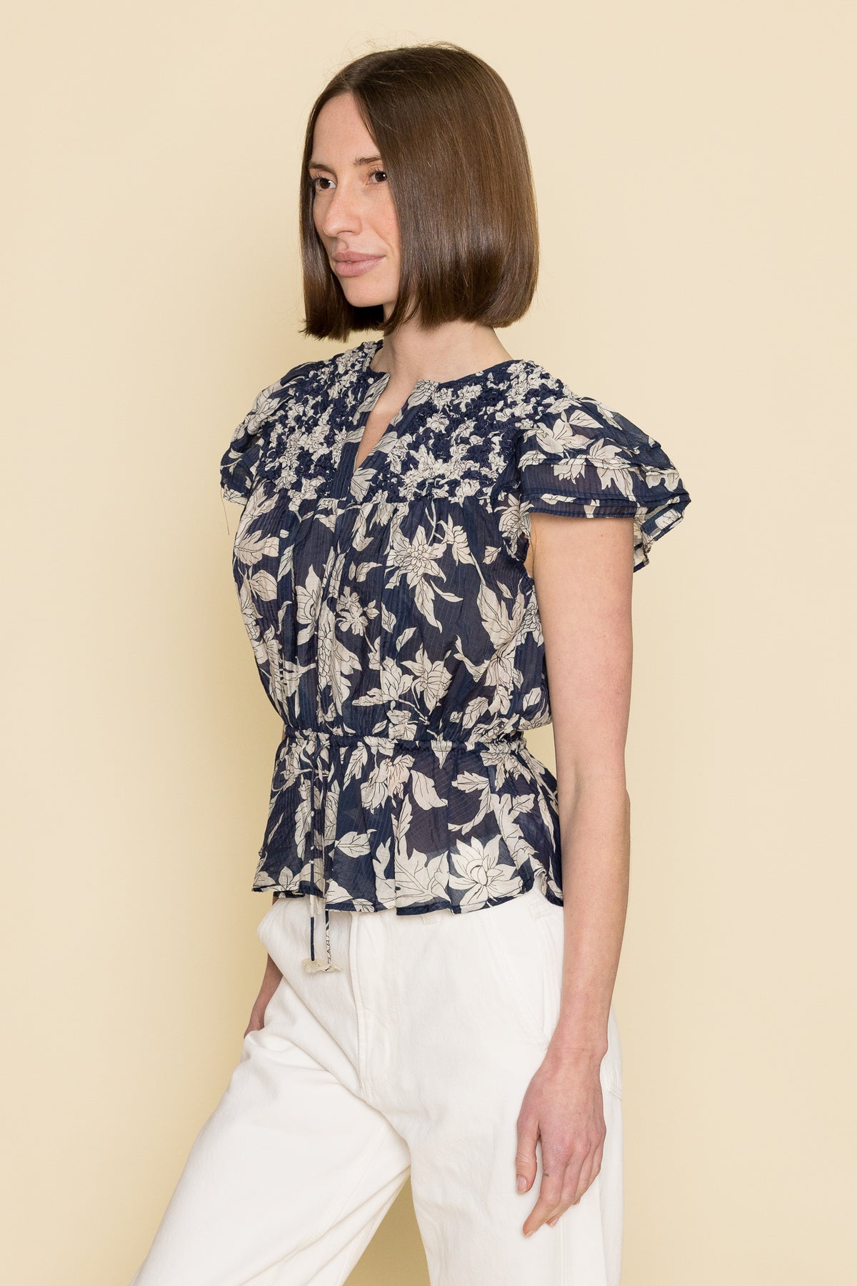 The En Saison Madeline Blouse brings a flirty twist to your everyday wardrobe with its charming peplum hem that adds instant dimension and movement. Crafted for comfort and style, this versatile piece pairs effortlessly with jeans, skirts, or trousers for a polished look that works from office to weekend brunch. The playful silhouette flatters your figure while the quality construction ensures you'll reach for it again and again. Perfect for anyone who loves a little extra personality in their closet.