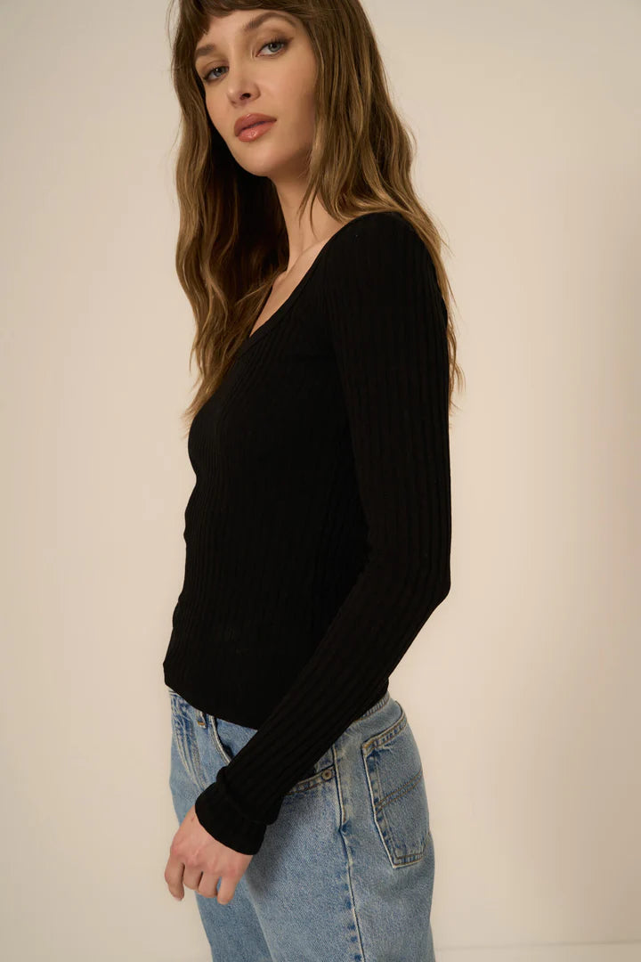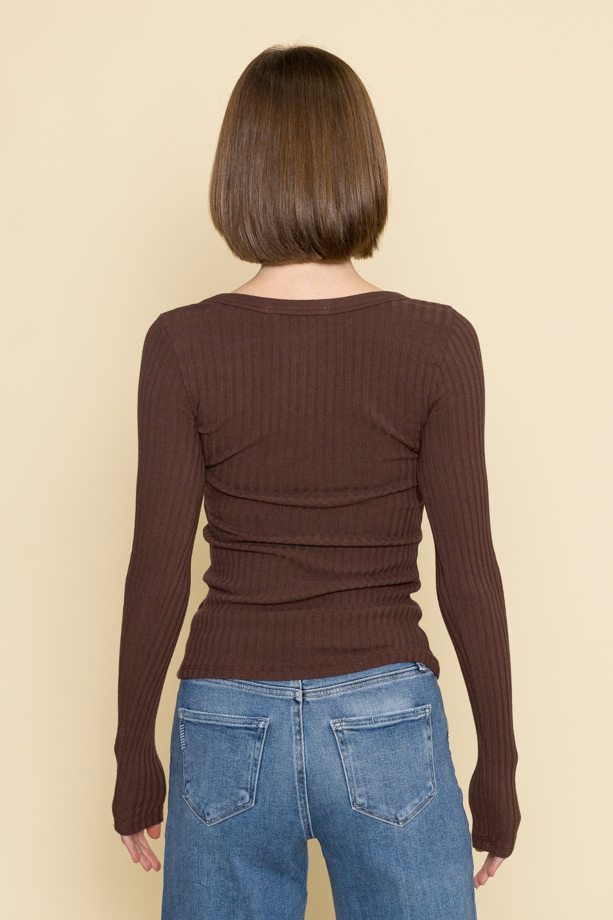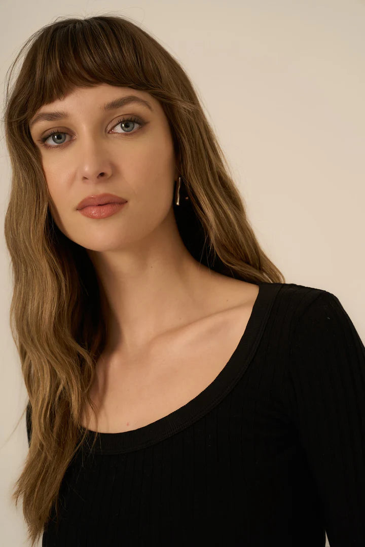 The What's The Scoop Washed Rib Long Sleeve is the perfect blend of fashion and comfort, thanks to our iconic sweater rib fabric and washed-dye technique. The wide rib fabric, scoop neck, and fitted silhouette keep this long sleeve looking tailored while still feeling comfy.