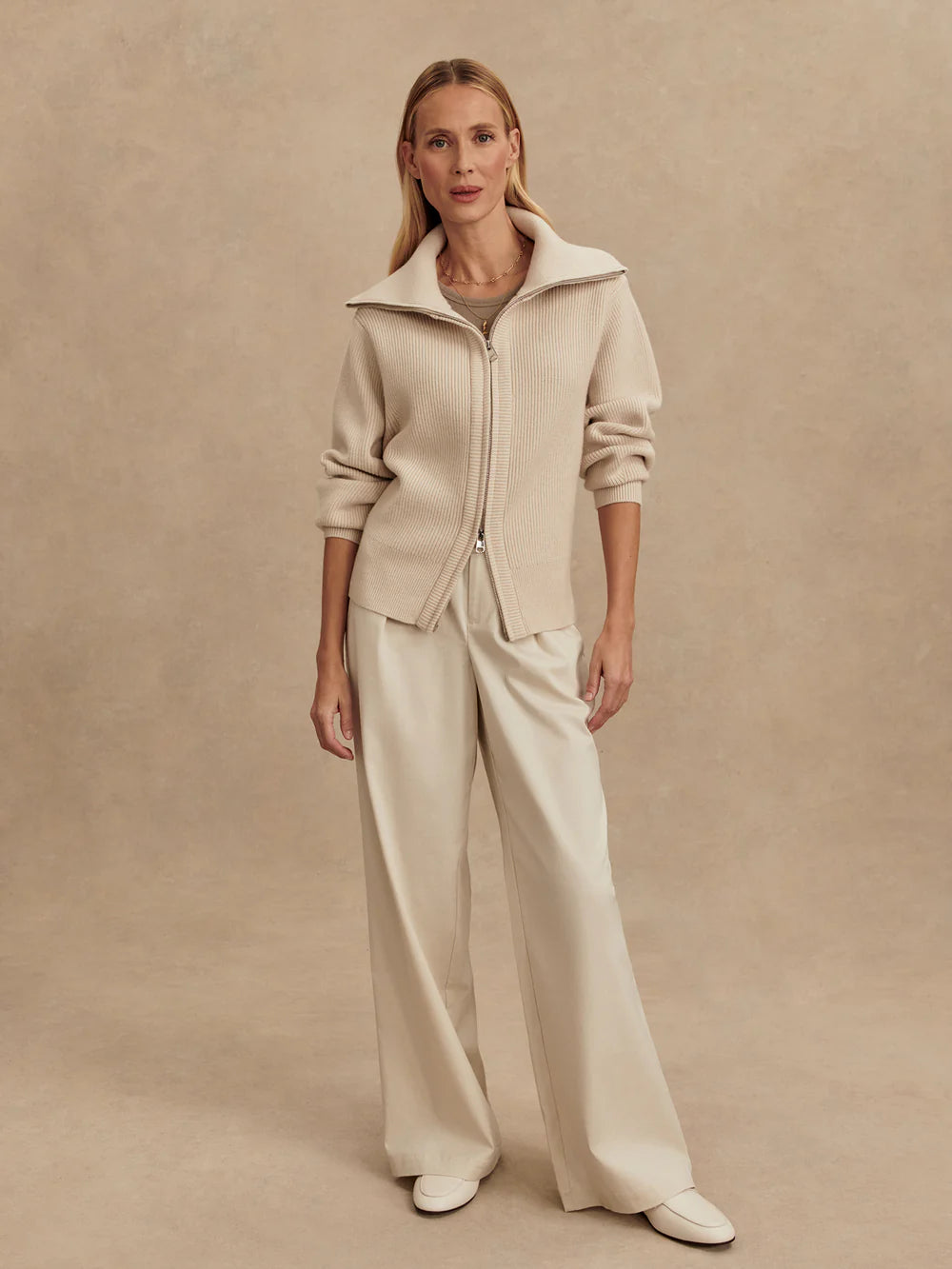 Layer up in the Enrico, a soft knit jacket that blends versatility with comfort. Crafted from our Soft Viscose yarn in a mid-gauge, all-over rib stitch, it has a more substantial feel, perfect for cool weather layering. Complete with a double-ended zip, a fold-back collar, and fashioned armhole trims.
