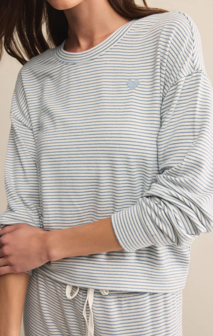 Laid-back and lightweight, this striped sweater knit crew keeps it cozy with a softly brushed feel. The relaxed fit and crew neckline make it perfect for winding down or catching some Zzs.