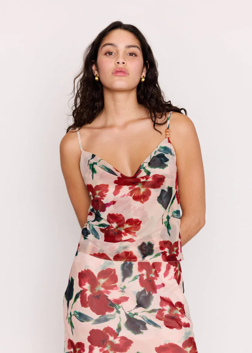 Slip into effortless elegance with the Arabella Bias Cami! This charming piece features a graceful bias cut in soft, flowing chiffon that drapes beautifully against your skin. Delicate spaghetti straps are adorned with shimmering glass bead details that catch the light with every movement. Perfect for layering under blazers or wearing solo on warm evenings, this versatile cami brings a touch of sparkle to any outfit. A wardrobe essential that feels as good as it looks!
