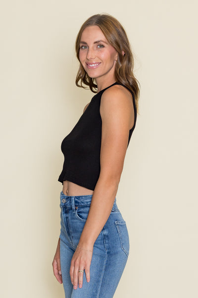 A great summer basic, this cropped style is an essential for this season and beyond. In our draped slub rib fabric, this tank is luxuriously soft to the touch and ideal for layering.