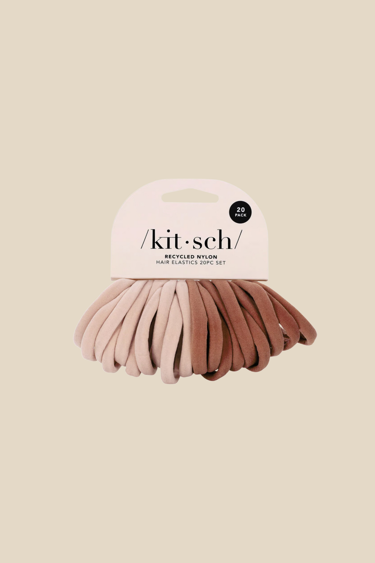 Kitsch Recycled Nylon Elastics are an everyday must-have! Consciously created from recycled materials, these elastics are every ponytail's perfect hair basic & eco-friendly too! These elastics glide gently through hair for a tight all-day hold while being kind on your hair and the environment.