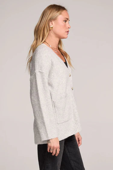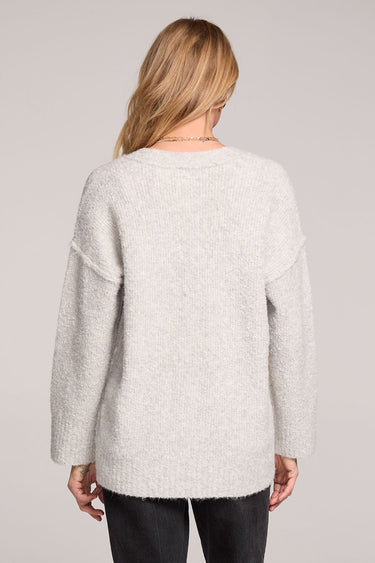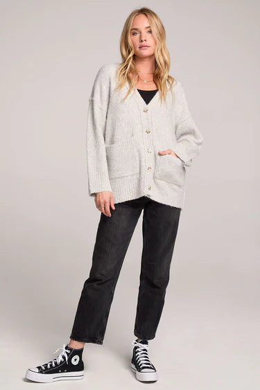 The Ennza Cardigan Sweater embodies Scandinavian elegance with its classic design, featuring patch pockets and a deep V neckline.