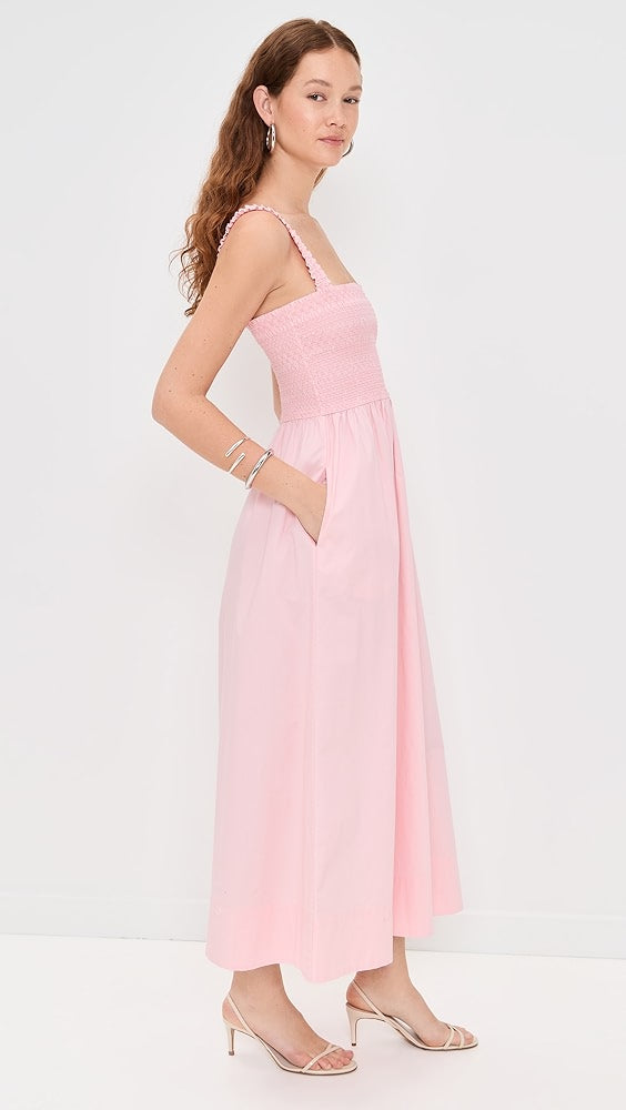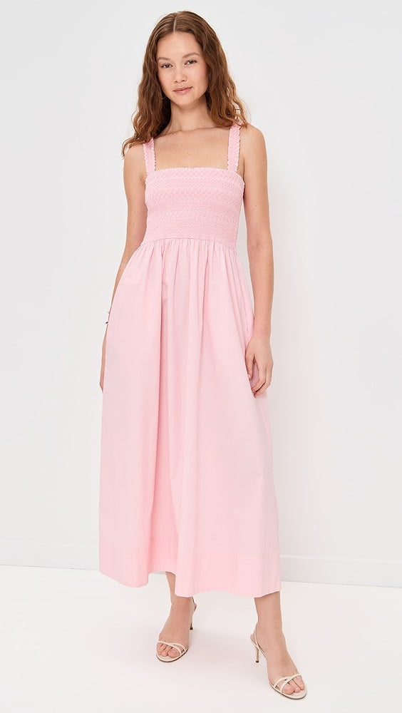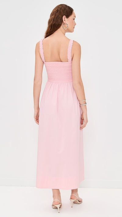 Breathable stretch cotton and a timeless maxi silhouette make this smocked sundress your go-to for easy days.