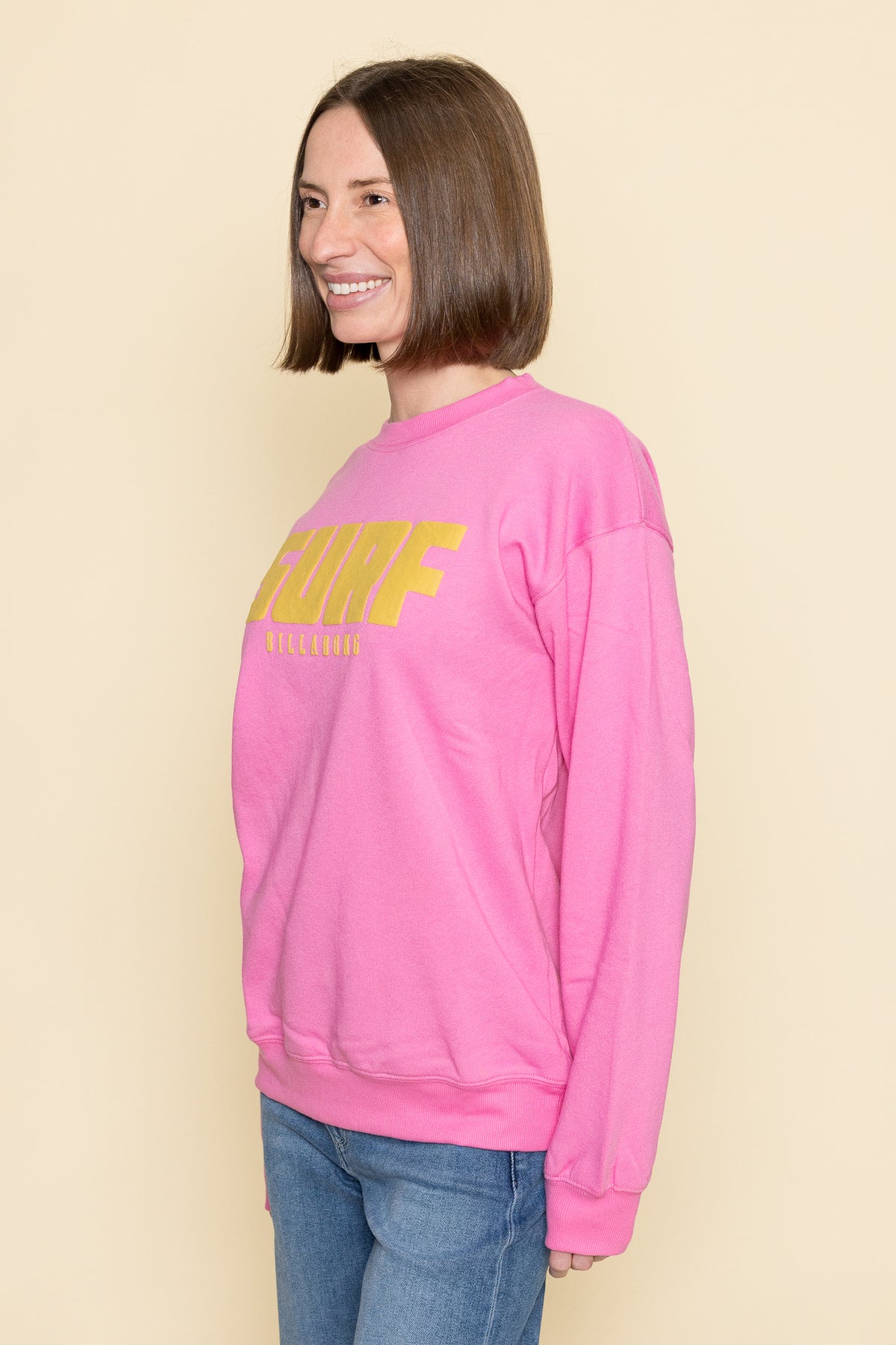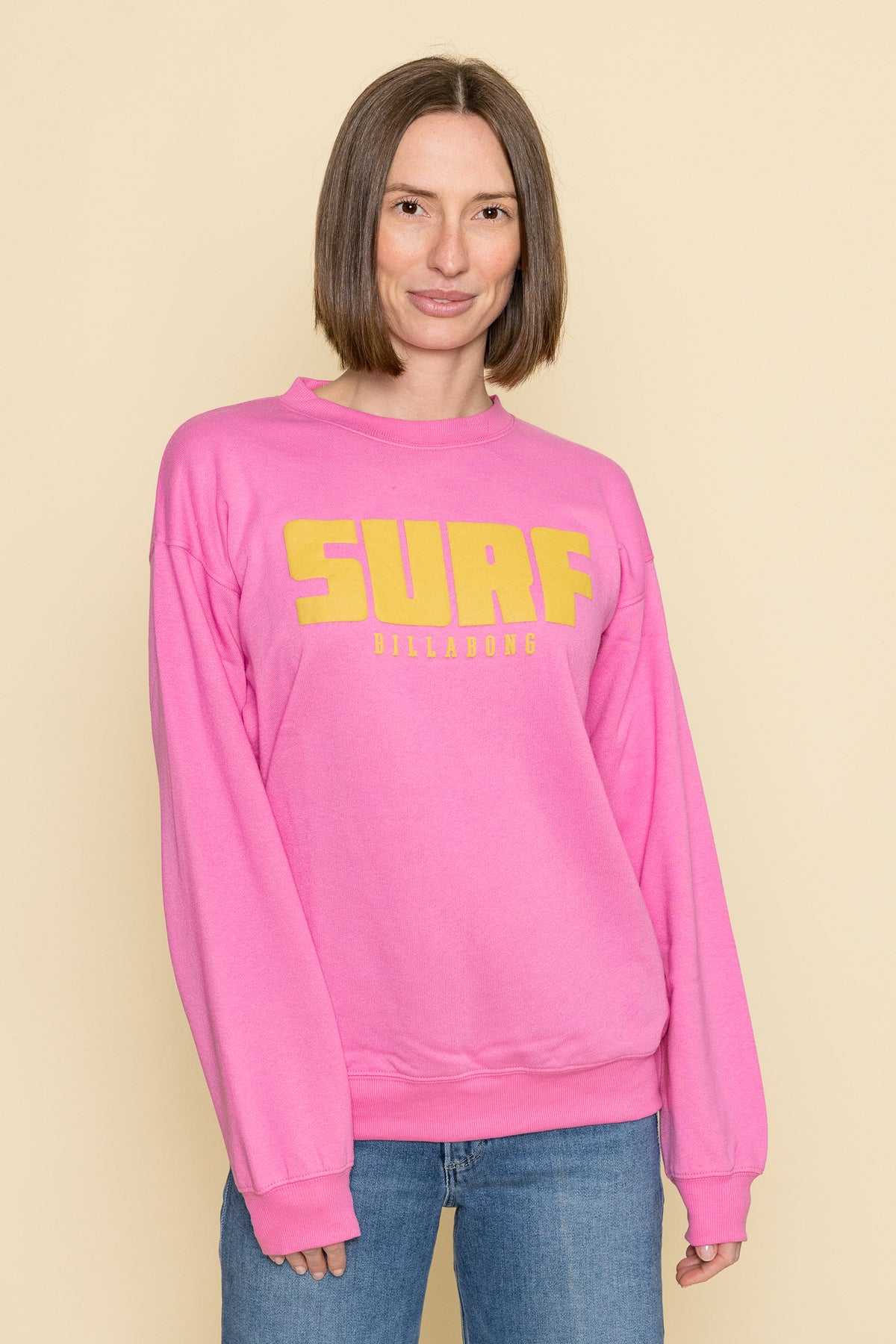 Catch those laid-back surf vibes in this cozy cotton-blend crew neck. The relaxed fit and soft fleece fabric make this screen-printed sweatshirt perfect for post-beach hangouts or casual weekends.