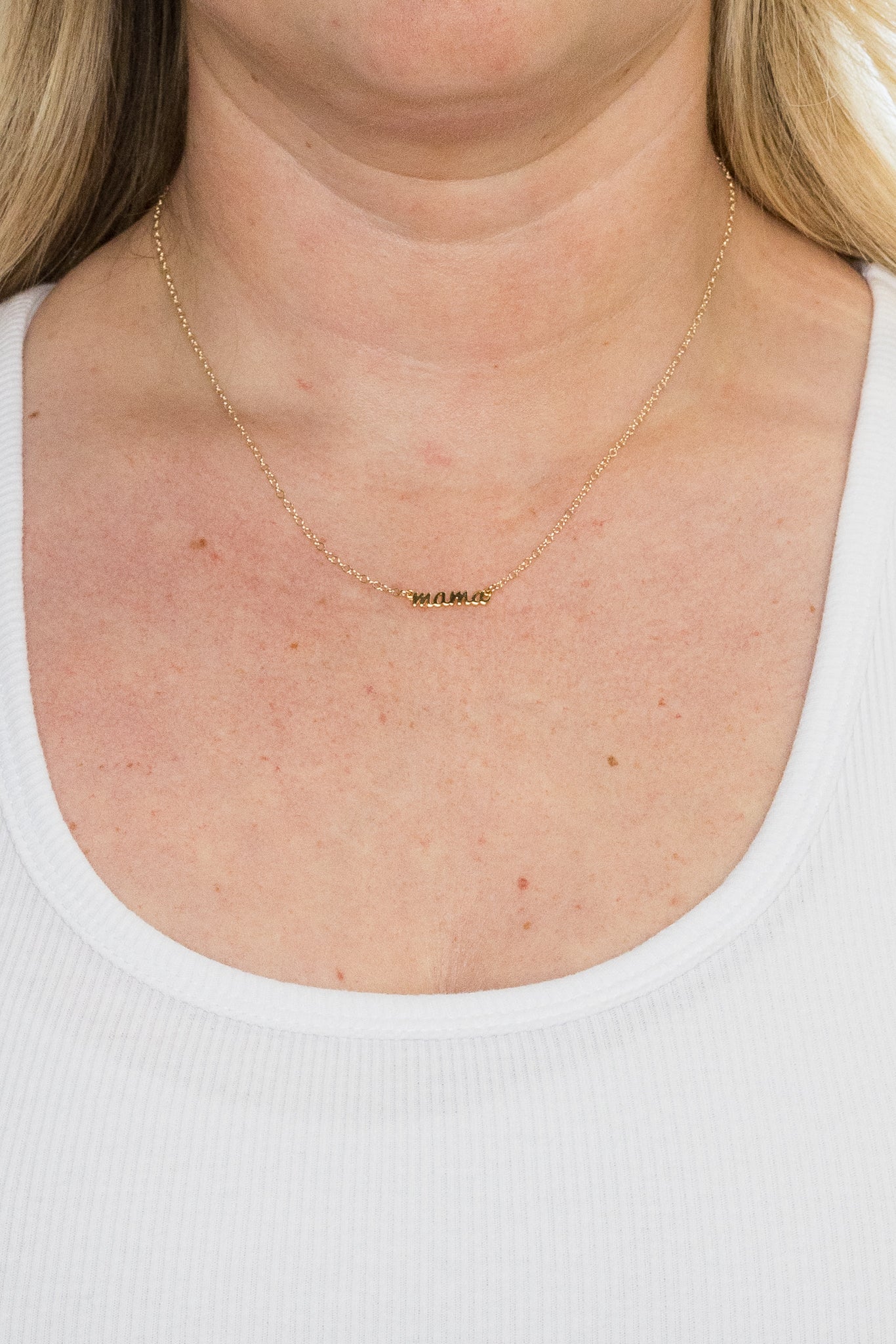 The classic Mama script ID necklace, the perfect way to celebrate being a mama.