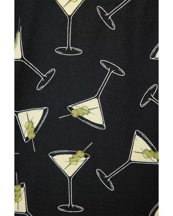 Shaken, stirred, or straight to bed—this martini-print flannel set brings cocktail lounge vibes to cozy time. Made from soft cotton in a classic twill weave, it includes a button-front top with contrast piping, relaxed drawstring pants, and a matching headband. A cheeky way to toast to comfort, whether you’re enjoying at-home happy hour or drifting into dreams.