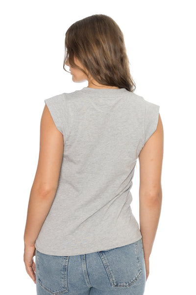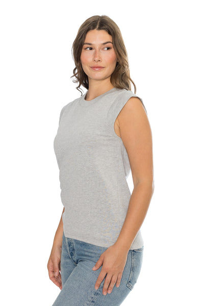 A muscle tank, but make it feminine, with a ribbed, crew neckline and over the shoulder short sleeves.
