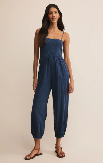 Sunny days call for the perfect jumpsuit, and this crinkle cotton gauze one-piece is butter soft and comfortable. The smocked bodice and straight neckline create a flattering fit that sits at the high waist then flows into the relaxed legs.