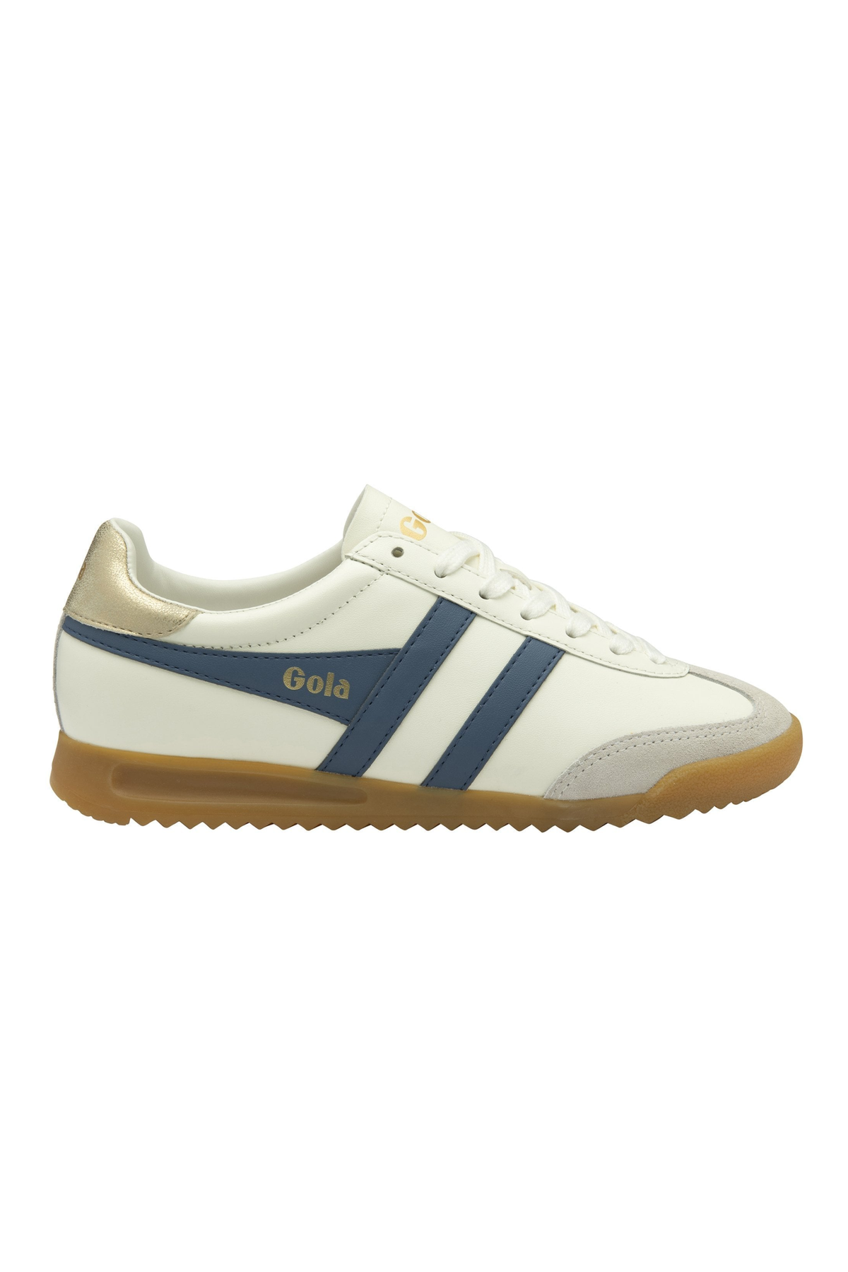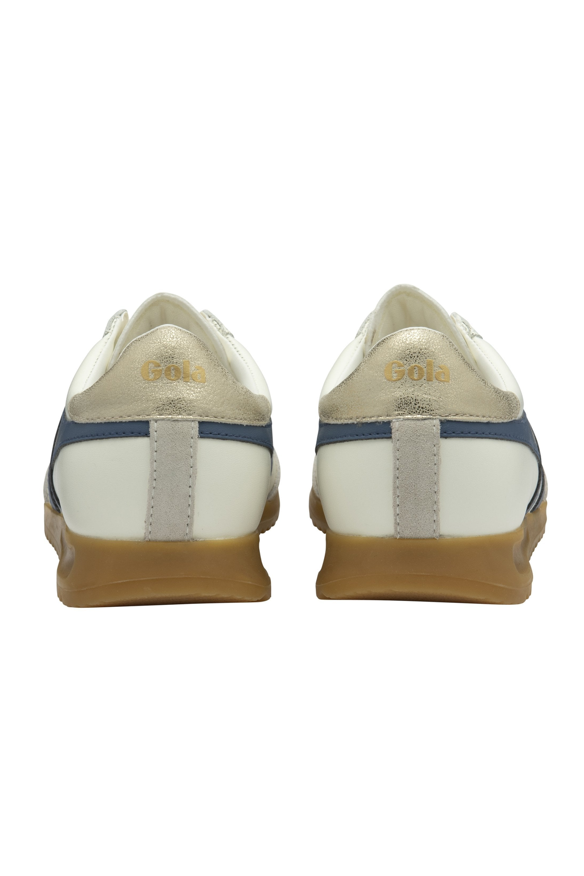 Descending from its 1985 Gola back catalogue ancestor, Torpedo is a sister style to Gola Tornado. Presented here in a crisp off white leather upper with moonlight blue Gola wingflash branding and a gold heel tab, Gola Torpedo for women has Gola handwriting in its genes. From the almond shape of the toe to the integrated gum toe bumper, this is a style that is an intrinsic part of the Gola brand’s evolution.