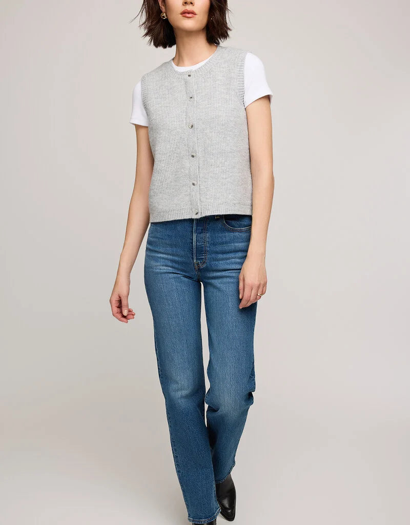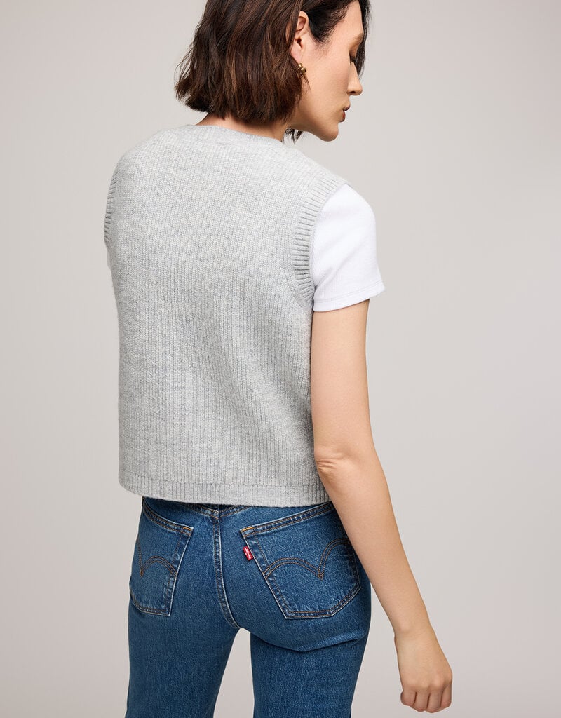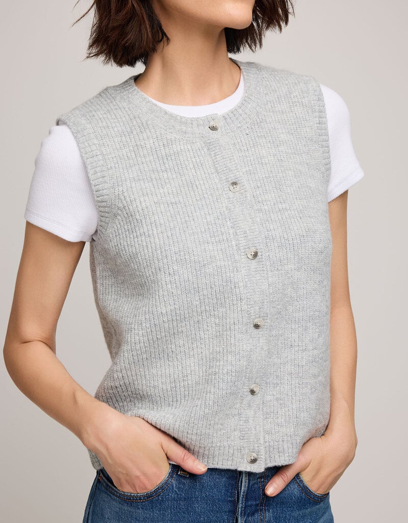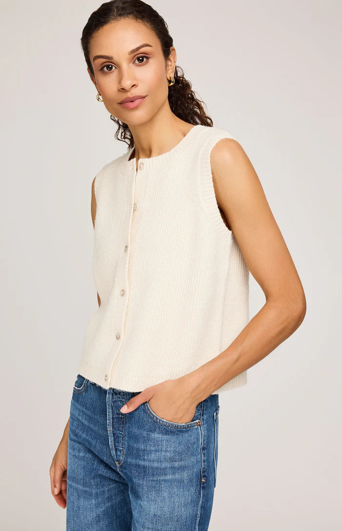The Winnie Tank is made of a soft yarn in a half cardigan stitch. Features include a crew neckline and button front closure. Wear it on its own or layered over a fitted tee.